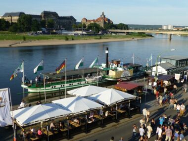 On 1st May 2019 there was a paddle steamer parade on the River Elbe setting off from Dresden and sailing up river in consort. There was much blowing of whistles,