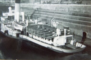 On Tuesday 5th May 1953 Cosens’s paddle steamers Monarch and Embassy left Weymouth at the crack of dawn for Southampton where they entered the same drydock shortly after mid-day. This