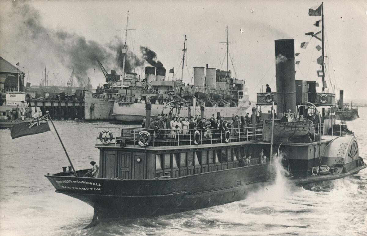 Red Funnel’s Duchess of Cornwall made the national press with her first excursion trip post VE Day in the early summer of 1945 from Southampton to Ryde.