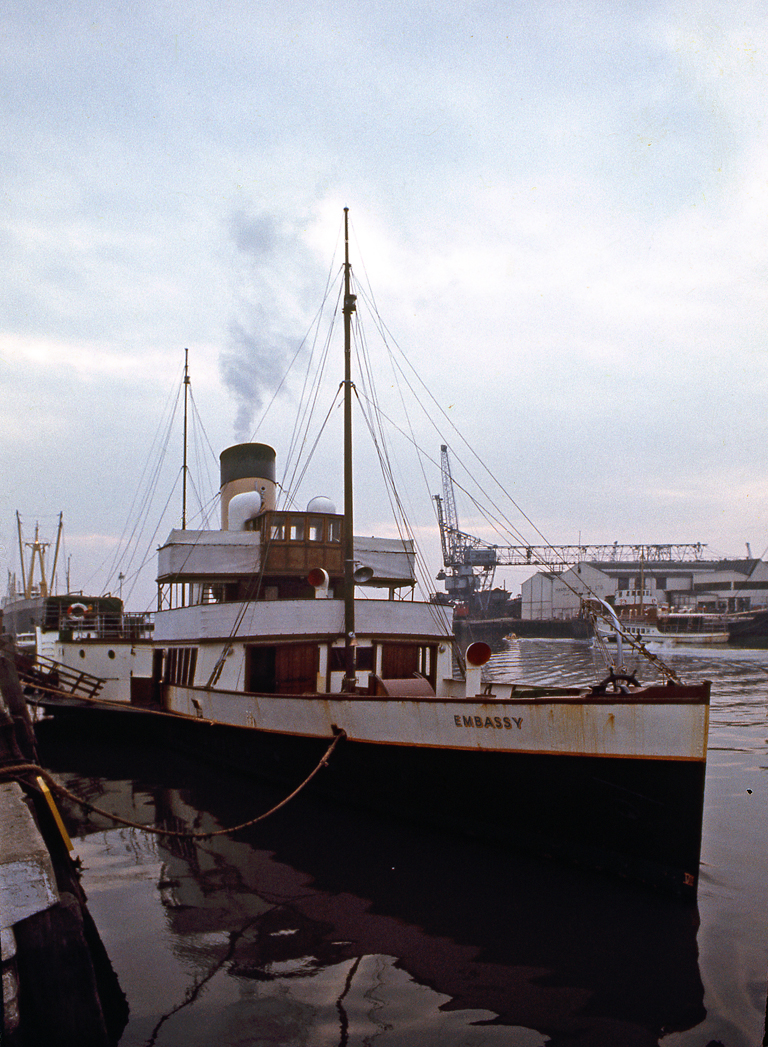 During his time working from Poole Fred lived on a houseboat at Cobbs Quay which is believed to have been an ex WW2 medical barge. Having started out as mate on Embassy in 1948, 1974 was Fred’s last season working on domestic passenger boats.