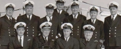 Captain Rawle on the bridge of Emperor of India in 1948 with the then Mayor of Poole, Alderman S F Langridge and the Mayor of Christchurch, Alderman E J Slinn.