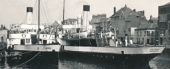 Fred Miller first appears on my radar as mate in a crew picture taken aboard Embassy in 1948 when by coincidence she was under the command of Ken’s father Capt Moore. Fred is not captioned in the picture but it is clearly him. How long he stayed on Embassy I don’t know but as the 1950s wore on and the Cosens’ fleet diminished so also did the opportunities for employment as mate. We know that in 1953 Embassy’s mate was a Mr Dixon so either Fred had moved to another Cosens’ paddle steamer by then or he had left the company. We know for sure that he wasn’t employed by Cosens after 1957.