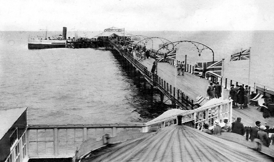 The pier at Bognor was damaged by a storm in 1908. It was sold to new owners the following year and they invested heavily in facilities at the shoreward end including a theatre, arcade and roof top garden restaurant. The landing stage was not reopened in the aftermath of the First World War and it was not until 1936 that repairs were affected so that paddle steamers could once again make occasional calls there