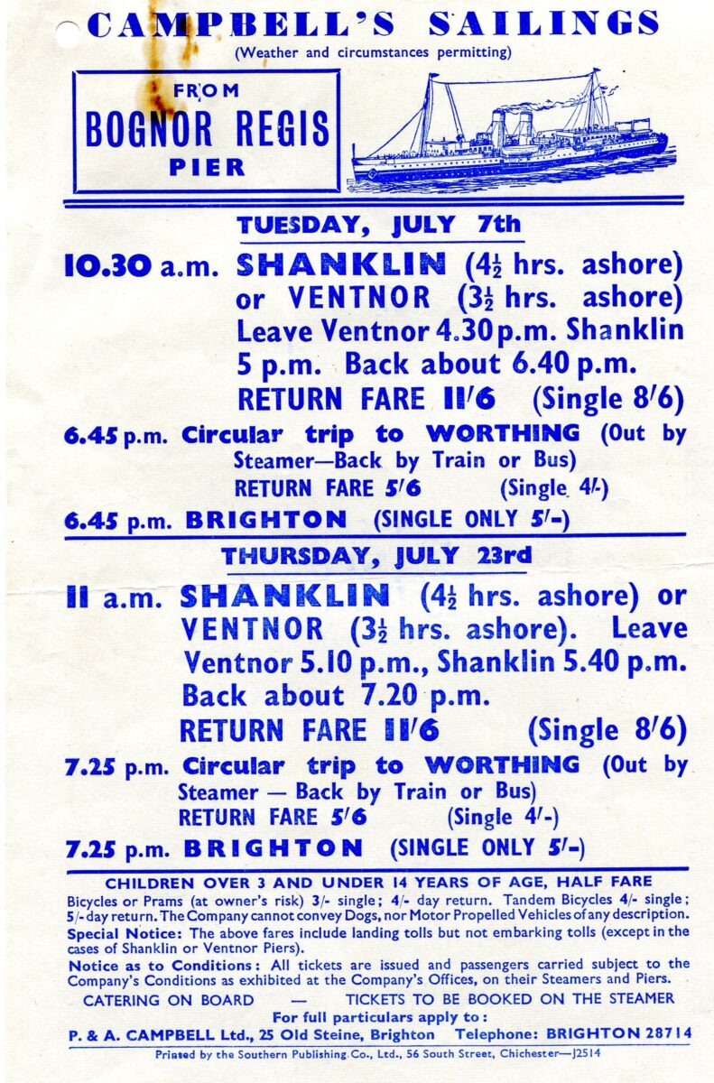 As another example: in July 1953 there were just two days of sailings scheduled from Bognor.